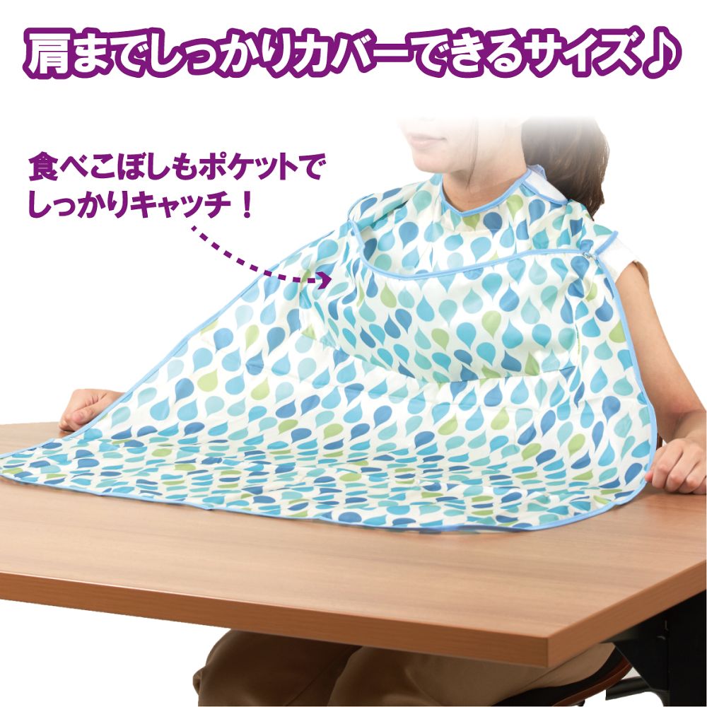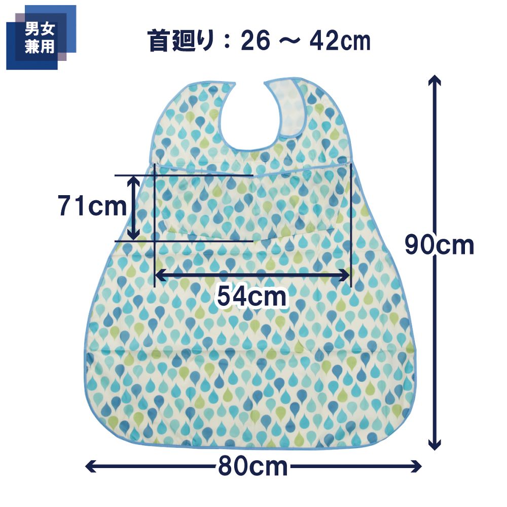 ●耐久性・耐熱性に優れ、やわらかな素材です。●素材:ポリエステル100%●首廻り:約26~42cm●面ファスナー式●洗濯方法:洗濯可/乾燥機可(家庭用乾燥機60℃まで)●色:ブルー●タイプ:ポケット付き●幅×丈(mm):800×900●撥水加工●脱水機可