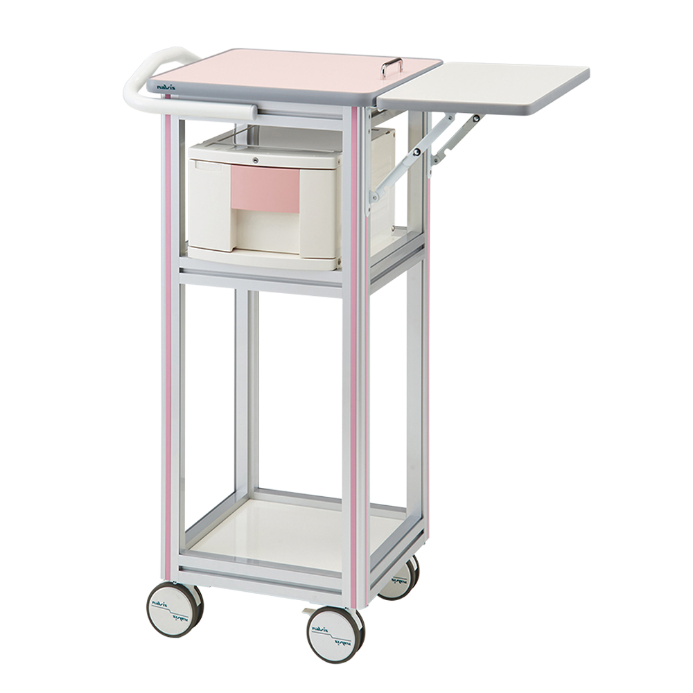 ●立ち姿勢でもパソコン画面が見やすい天板高さです。●コンパクトなボディで軽量アルミフレームを使用していますので、軽い力で操作できます。●天板には抗菌加工が施されています。●補助天板付き(ET-BP・ET-BB)は、より広い作業スペースを確保できます。●補助天板:あり●色:ピンク●引出し数:1●材質:本体/アルミニウム、天板・補助天板/抗菌メラミン化粧合板、引出し/ABS樹脂●サイズ:(幅)515×(奥行)450×(高さ)1080mm●天板有効サイズ:450×450mm●補助天板有効サイズ:450×300mm●引出し有効内寸:240×310×150mm●キャスター:φ100mmエラストマー製(対角ストッパー付き)●重量:17kg●交換用キャスター:ナビスキャスターΦ100 ネジ S有り・S無し(品番/8-2167-02-01・8-2167-02-02)