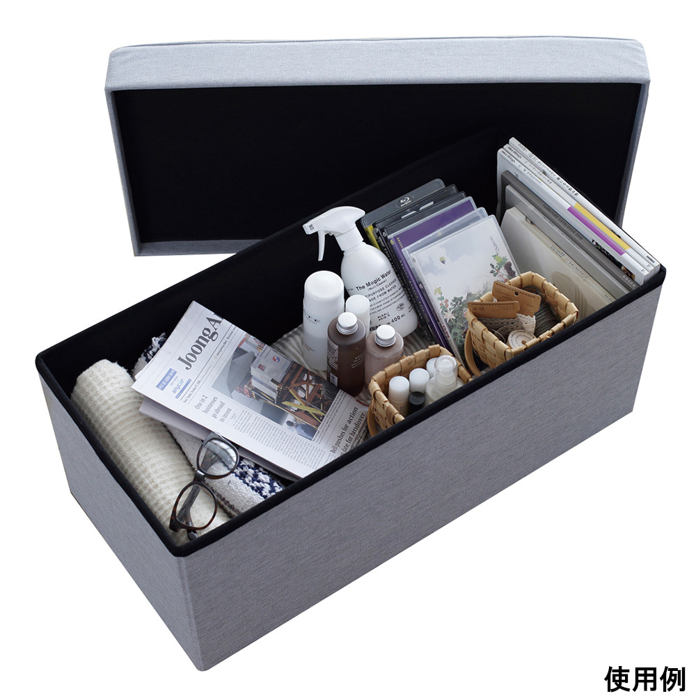 ●スツールやオットマン(足置き)としてマルチに使える収納スツールです。●折り畳むことができ、座り心地の良いクッションの座面です。●内容量(L):約71●色:ライトグレー●サイズ(mm):760×380×350●材質:構造部材/繊維板、張り材/ポリエステル、クッション材/ウレタンフォーム●内寸法:720×340×290mm●折りたたみ時サイズ:760×380×100mm●耐荷重:160kg●重量:5.5kg
