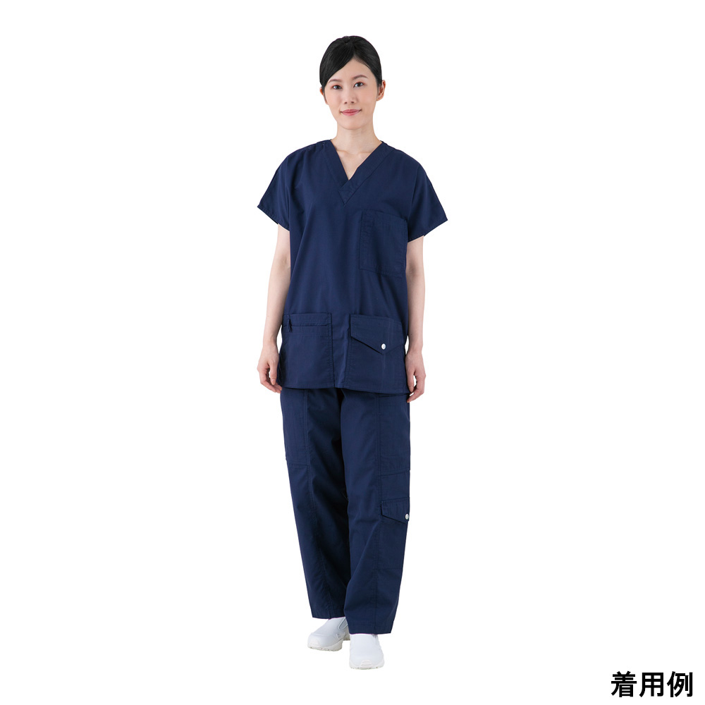 ●柔らかな肌触りと耐久性を備え、ポケットの多さ(6つ)が魅力の男女兼用スクラブです。●襟元のVネックは形が崩れないよう三角形に縫製それており、内側の肌に触れる面も気遣った強化縫製です。●生地は一度プレウォッシュ済(予め洗濯・乾燥済)のため、色落ちと縮みが最小限に抑えられています。●カラー:ネイビー●サイズ:XS●素材:ポリエステル65%、綿35%●肩スナップボタン・裾サイドスリット仕様●ポケット:ペンスロット付き胸ポケット×1、裏面胸ポケット×1、深めサイドポケット×3、スナップ付ポケット×1●※米国仕様サイズのため、通常より1つ下のサイズをお勧めします。●胸囲:96.5cm●着丈:67.5cm●裄丈:35cm