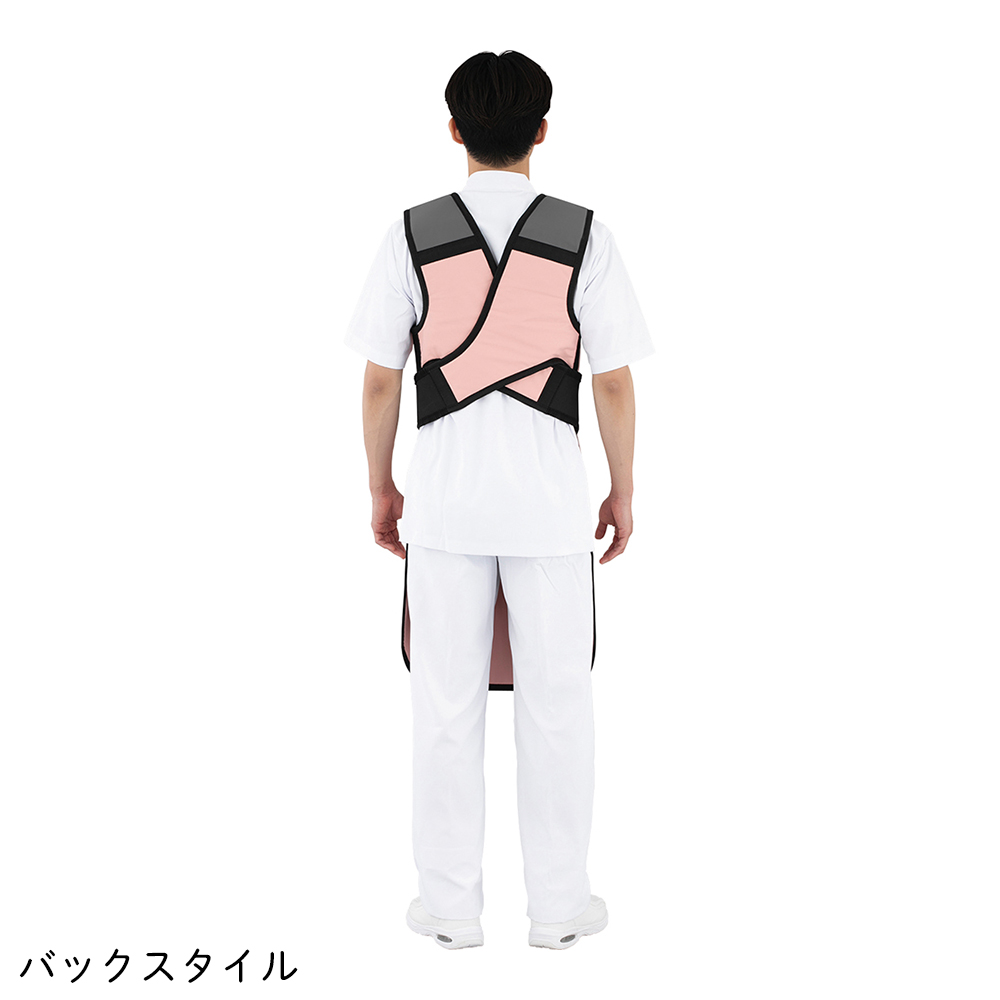 ●柔らかい素材を採用しており、着心地が良いです。●素材が柔らかいため遮へいシートの折れが発生しづらいです。●肩パット入りのため着用時の体への負担を軽減します。●ベルト部分の一部を伸縮素材にしているため体にしっかりとフィットします。●サイズ:M●タイプ:Leve(含鉛)●重量(kg):2.0●色:ピンク●材質(遮へいシート):含鉛ビニル●鉛当量:0.25mmPb●前幅×着丈:M/58×98cm