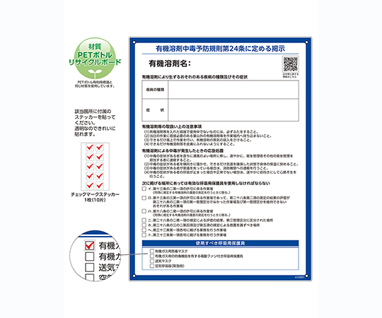 有機溶剤中毒予防規則標識 RAE-001 ペットボトルリサイクルボード 412001
